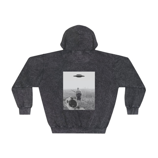 "Flush-out" Mineral Wash Hoodie with UFO Graphic - Vintage Vibe Streetwear